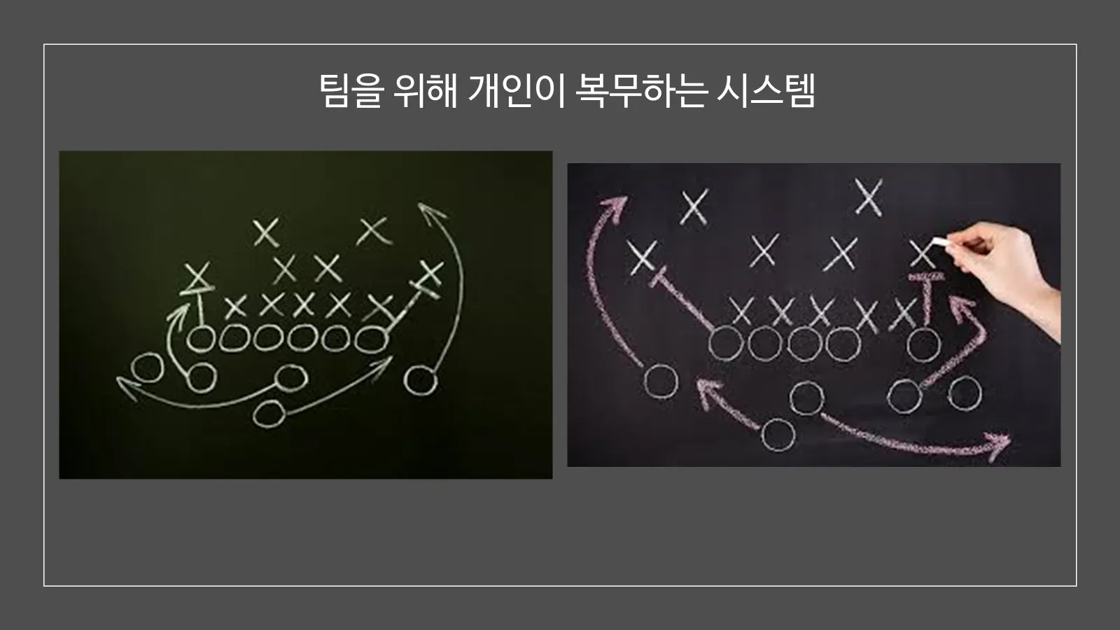왜 미국인들은 미식축구를 사랑할까요? 여러가지 해석이 있지만(’서부 시대 땅을 개척하던 문화 때문’이라는 믿기 어려운 가설도 있지요) 저는 풋볼이 미국인의 사고방식을 가장 잘 반영하고 있기 때문이라고 생각합니다. 밖에서 보면 미국은 천문학적인 CEO 연봉이 말하듯 한두명 스타에게 모든게 돌아가는 시스템처럼 보일 겁니다. 그런 미국인들도 팀웤, 희생하는 리더십을 중요하게 생각합니다. 개인의 권리를 희생하라고 강요하는 것에 반대할 뿐입니다.